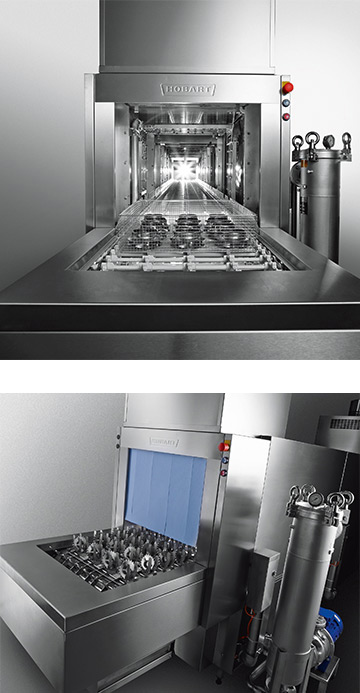 Our effective HOBART parts cleaning systems remove unwanted particles and contamination films from the parts, so that the cleaned parts fully satisfy the residual contamination requirements of the automotive supplier and metal-processing industry. For many years, HOBART has been active in the field of parts cleaning, and can look back a long-term experience. Depending on geometry and number of parts, you can use the spray tunnel washer FUX or the chamber washing system UXTH.