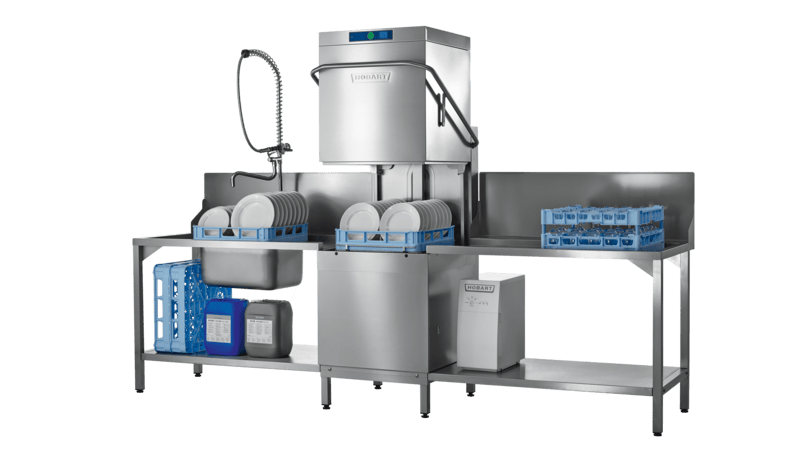 The premium hood-type dishwasher for the most exacting demands in wash results and economic efficiency. Manual pre-cleaning is no longer necessary with the PERMANENT-CLEAN automatic soil removal. The soil is immediately removed into an external strainer.