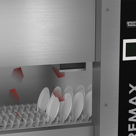OUR CLEVER SOLUTION FOR YOU: The thermal energy contained in the exhaust air is 100% regenerated by means of state-of-the-art technology and returned to the rinse process. This not only helps you to reduce the energy consumption of your machine but also to save on the related operating costs.