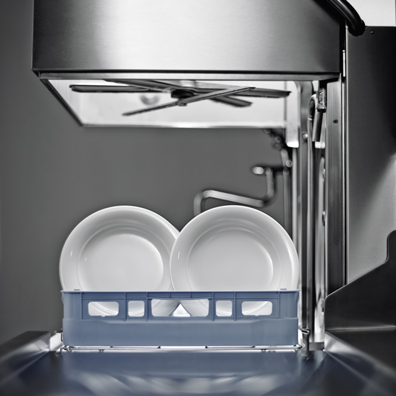 In bistros and bars, dishwashers are frequently installed in the counter area and are in the immediate vicinity of the guests. To avoid disturbing their conversations, the SOFT-START wash pump literally ensures a soft and quiet start of the washing action.